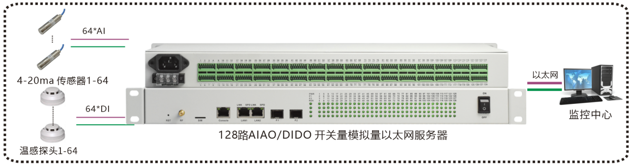 | 产品功能描述 | 在以太网/4G/WiFi上传输128路DI/DO/AI/AO,机架式 |