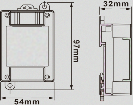 尺寸:97mm(长) x 54mm(宽) x 32mm(高)安装方式:35mm导轨安装、壁挂式安装 |