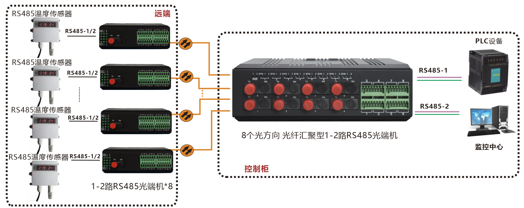 | 产品功能描述 | 8路汇聚光口RS485光端机 |