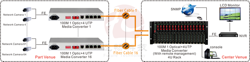 This series of products are IEEE802.3 Ethernet media converter, can achieve 4 10/100Base-T twisted pair and light medium conversion or extend the network transmission distance, is mainly used for optical fiber network transmission distance (20/40/60/80/120 km), fully support the 10/100M transmission rate;