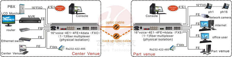 Voice Over Fiber/E1 Voice Over E1 Series Voice Over Fiber Series Multi-service Voice RACK Mount Voice Modular multi-service optic multiplexer More>>