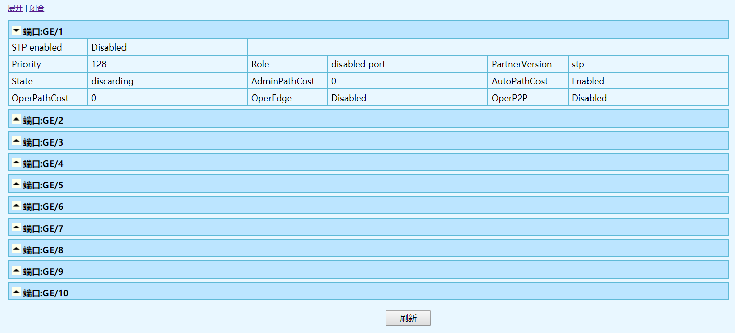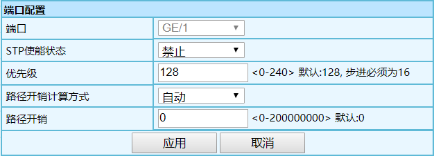 | STP使能状态 | 端口的STP使能,[禁止]或[使能],默认为禁止 |