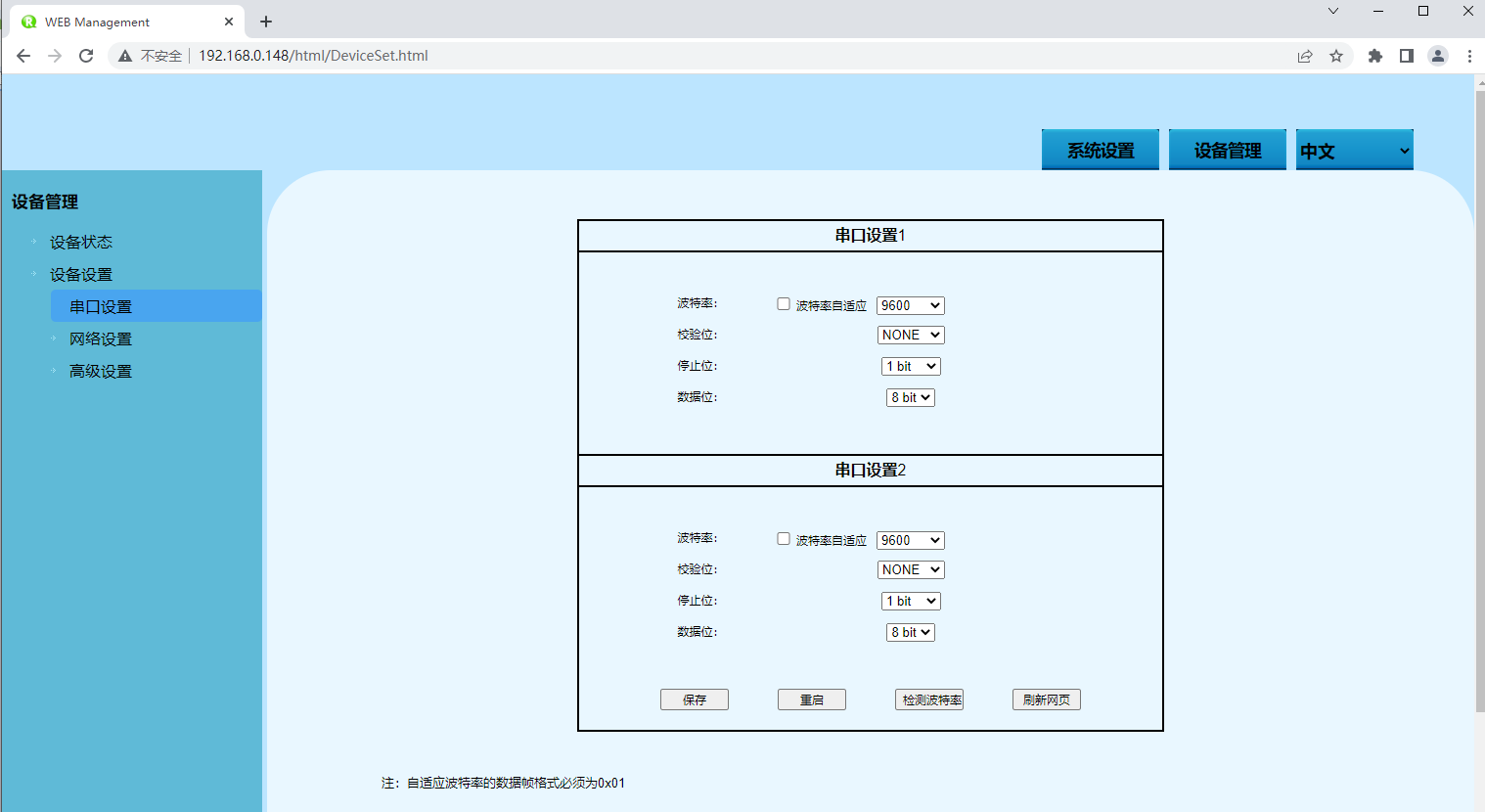 | 串口设置 | 串口设置配置栏 |