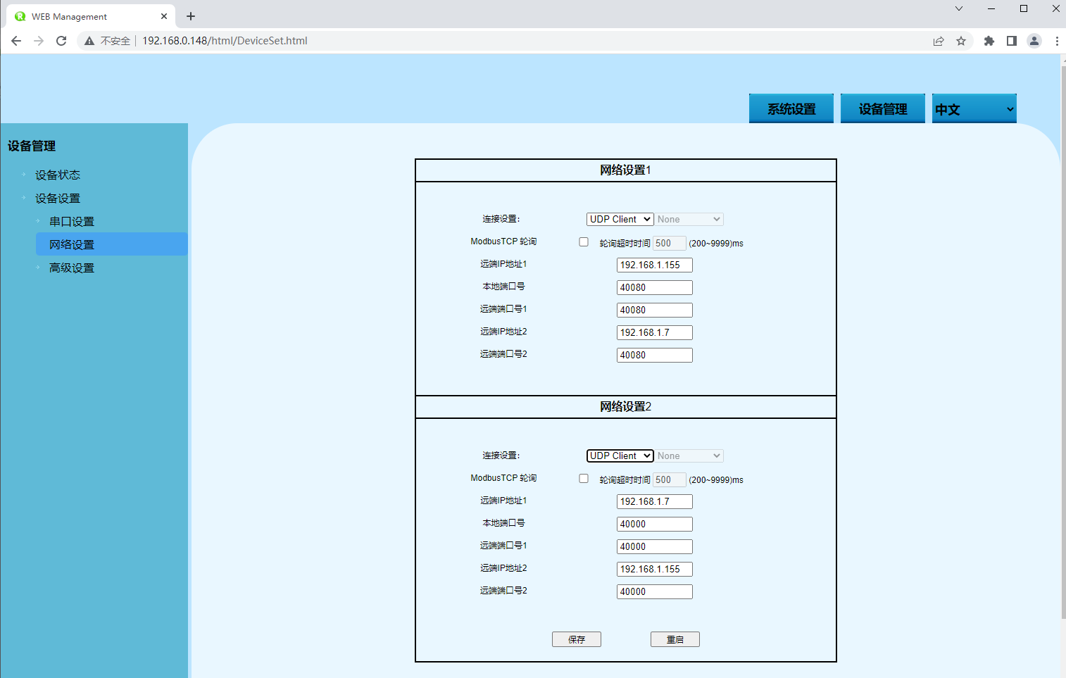 | UDP Client Mode | UDP Client Mode配置栏 |