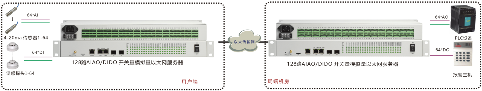 | 产品功能描述 | 在以太网/4G/WiFi上传输128路DI/DO/AI/AO,机架式 |