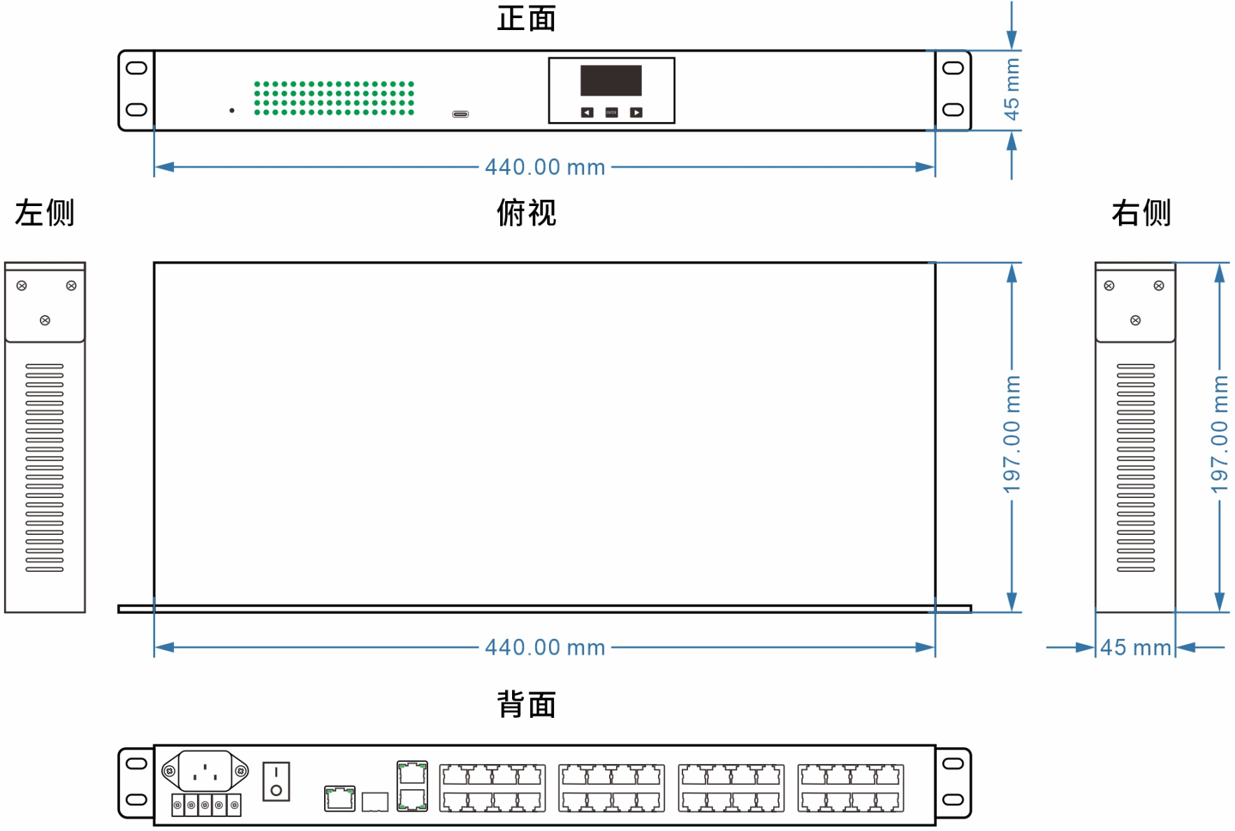 | 电源 | AC220V,DC-48V,DC24V 支持双电源备份 |