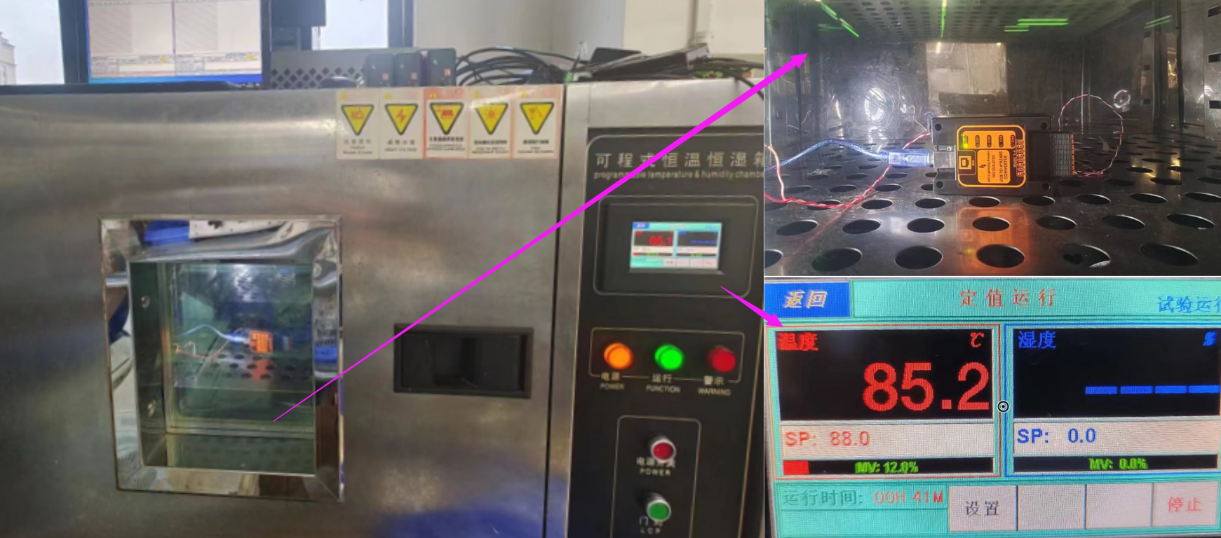 +85度高温测试:在设置成+85度的老化箱里,转换器能正常工作,不会丢包及死机
