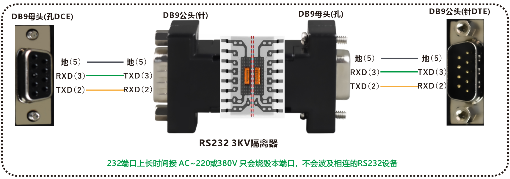 | 业务端口描述 | 1路DB9 RS232公头;1路DB9 RS232母头 |
