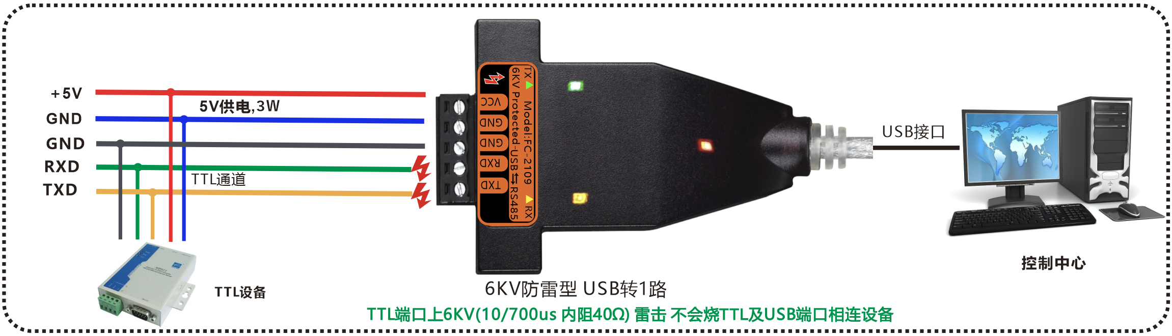 | 产品功能描述 | 防雷型USB转1路TTL转换器,带USB线 |