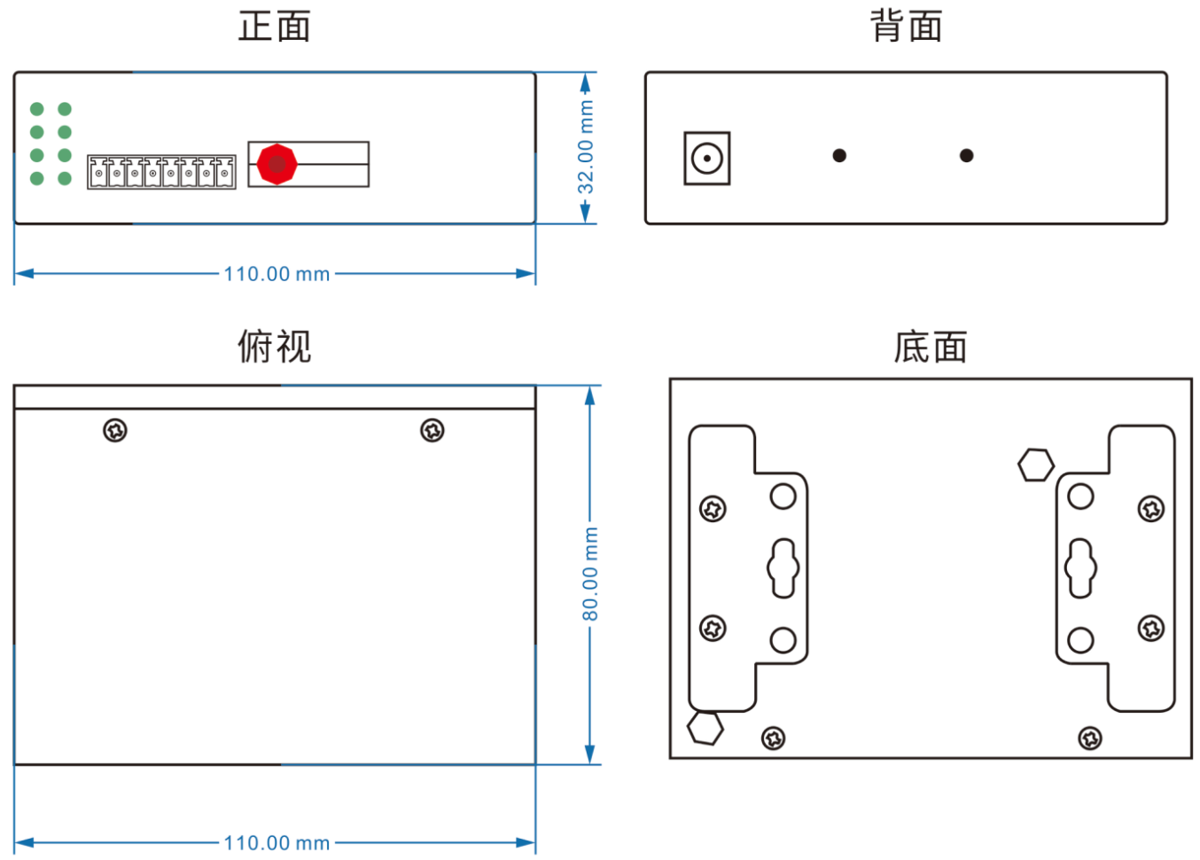 (110mm(长) x 82mm(宽) x 32mm(高) 安装方式:、壁挂式安装 |