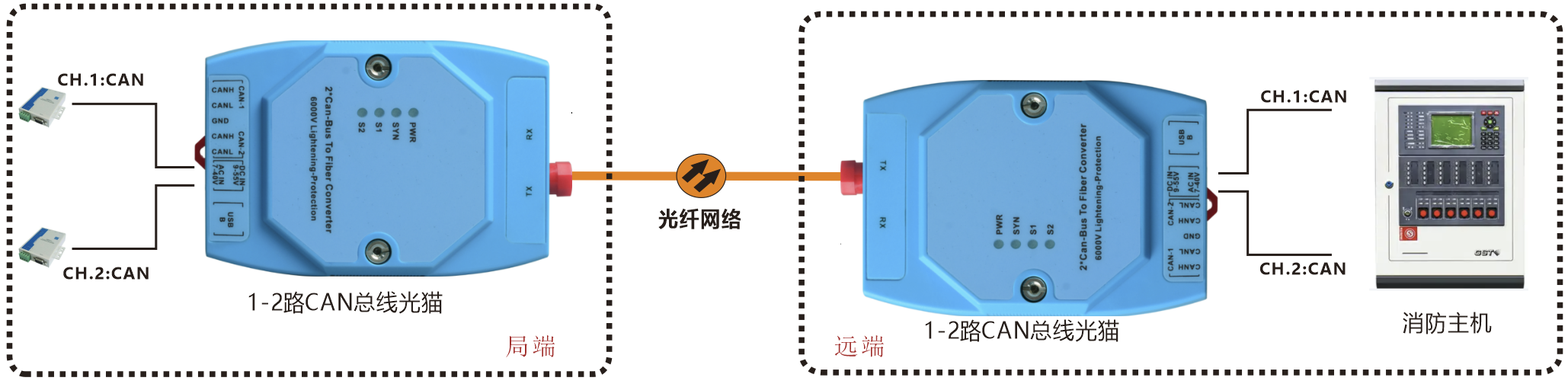 | 产品功能描述 | 在光纤上同时传送1-2路CAN 总线接口 |