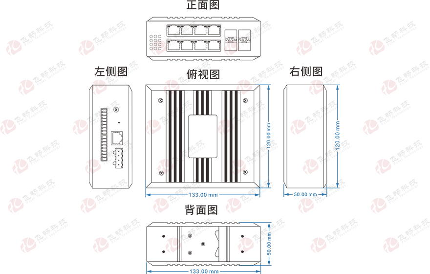 | 电气和机械特性 | 外观结构: 133mm(长) x 120mm(宽) x 50.0mm(高) |
