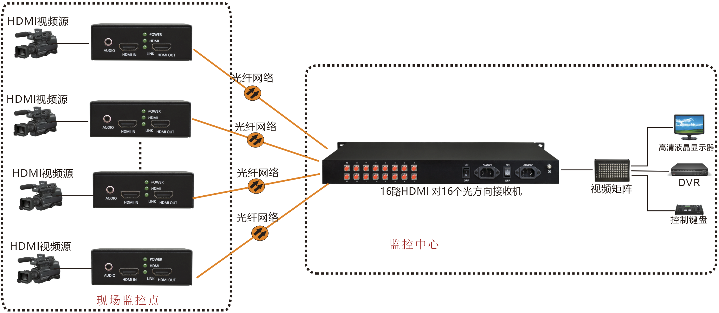 | 产品功能描述 | 在光纤上同时传送16路2K HDMI 信号 |