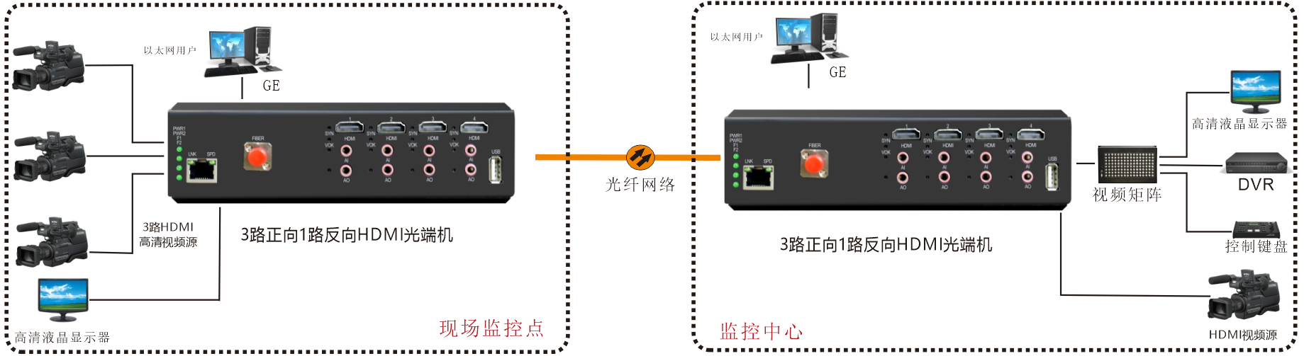 | 业务端口描述 | 1个光纤接口;4路HDMI信号,1路千兆以太网,1路USB1.1 |