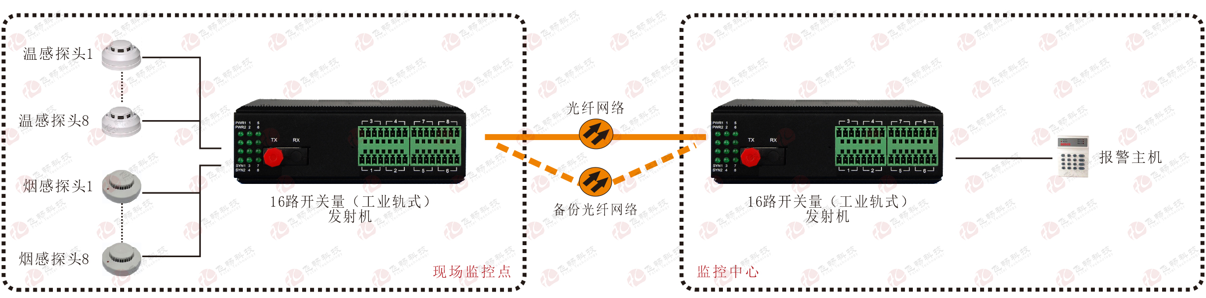 | 产品功能描述 | 工业轨式 14路开关量提供一路告警输出 光端机 |